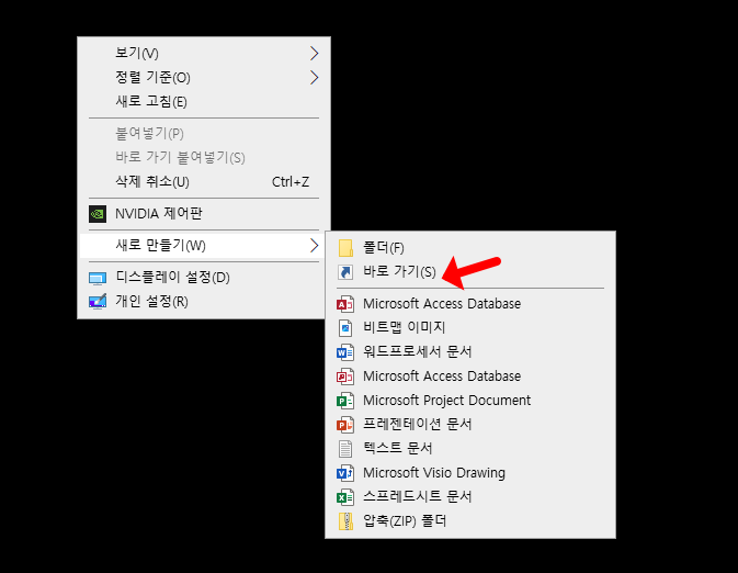 컴퓨터에 바로가기 만들기