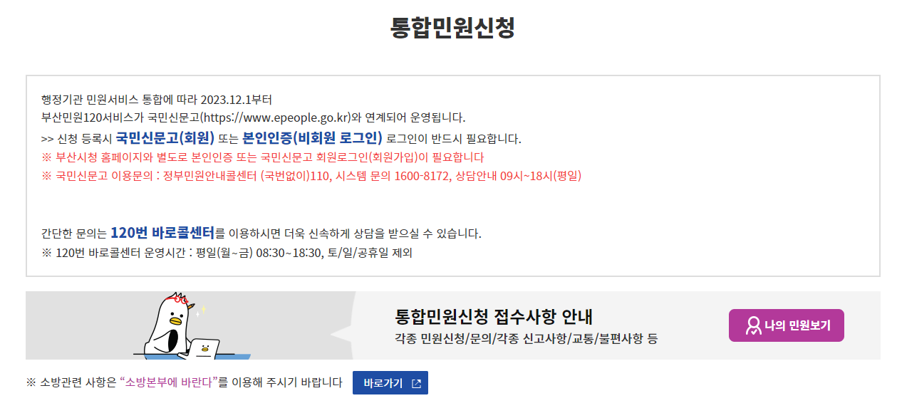 - 민원 서비스: 부산시민 또는 방문객들은 다양한 민원을 온라인으로 신청할 수 있으며, 민원 상태를 확인하고 결과를 받아볼 수 있습니다.