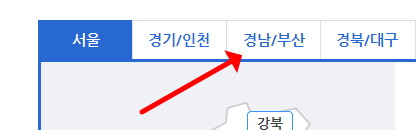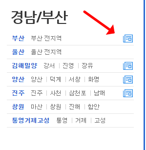 - 지역 목록에서 '경남/부산'을 선택한 후에 '부산 전 지역' 옆 '신문 아이콘을 클릭'합니다