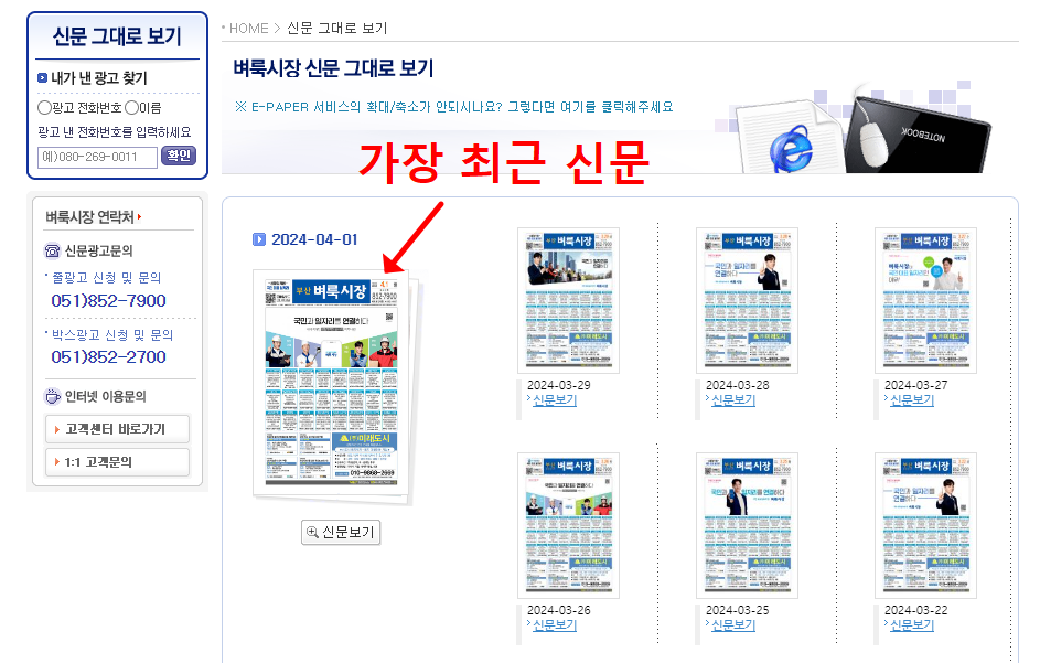 부산 벼룩시장 종이신문 그대로보기