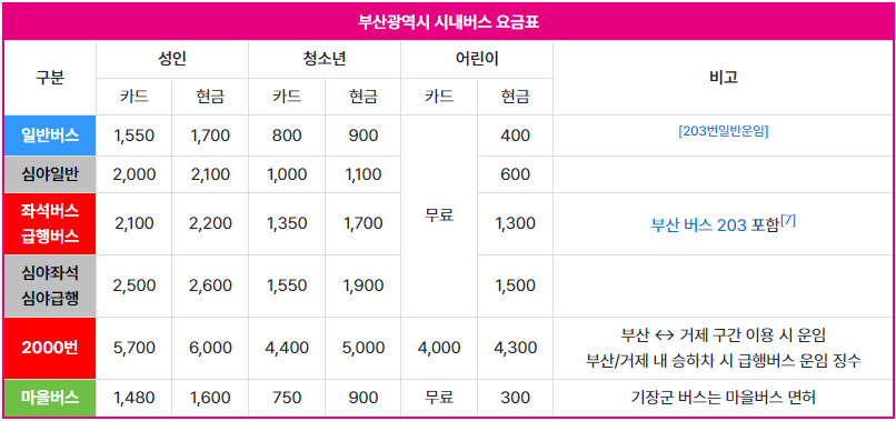 마을버스 요금도 최대 350원 범위 내에서 각 구·군이 조정하여 인상한다고 합니다. 또한 부산과 경남 거제를 오가는 2000번 버스의 경우 성인 기준으로 교통카드 사용 시 5,700원으로 인상되었네요. 이렇게 부산 시내버스 요금뿐만 아니라 다양한 대중교통 요금이 함께 조정되는 만큼, 평소 자주 이용하는 노선의 요금 변동을 미리 확인해두는 것이 좋을 것 같습니다.