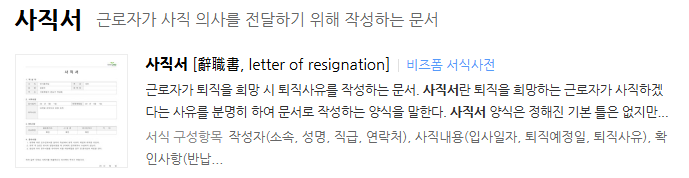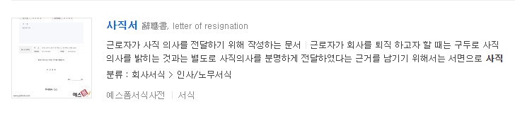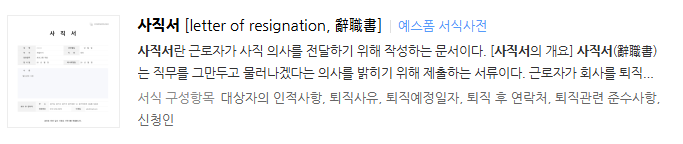 사직 사유 작성 요령
