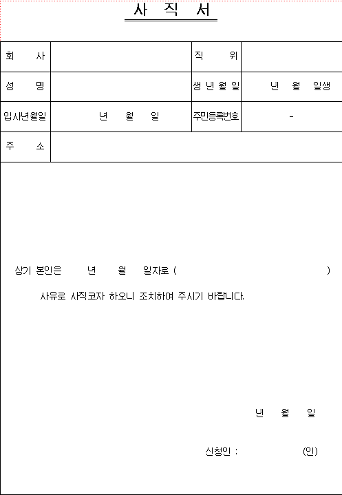 사직서 양식 무료다운 hwp