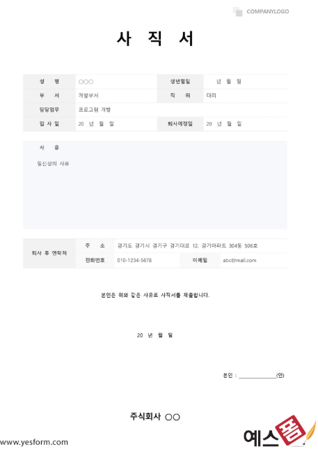 사직서 양식의 주요 구성 요소