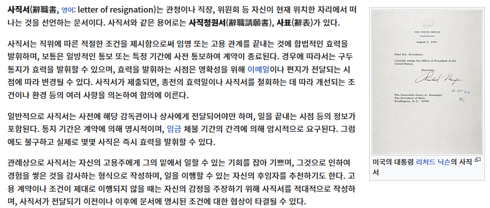 사직 사유 작성 요령
