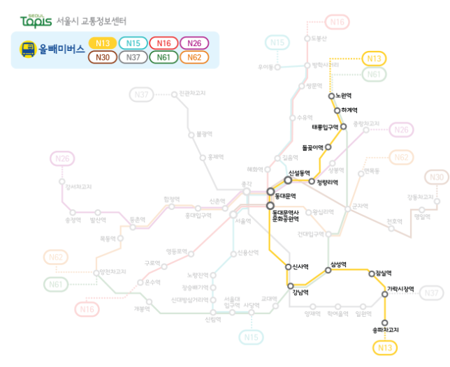 서울 심야 버스의 다양한 노선 중에서 특히 많이 이용되는 몇 가지를 소개해드릴게요. N13번은 상계동과 장지동을 연결하며, 주거지역과 상업지역을 아우르는 경로로 많은 사람들이 이용합니다. N15번은 우이동에서 사당역까지 이어져 있어, 지하철과의 연계가 좋습니다. 또 N26번은 도봉산에서 신도림역까지 운행되며, 이 또한 많은 승객들이 이용하는 인기 노선입니다. 이러한 노선들은 서울의 주요 지역을 촘촘하게 연결하고 있어 늦은 시간에도 편리하게 이동할 수 있습니다.