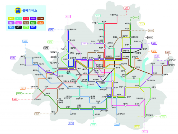 서울 심야 버스 노선도 정보를 알려드리겠습니다! '올빼미 버스'로 불리는 이 심야버스는 밤 11시 10분부터 새벽 6시까지 운영되며, 총 14개 노선이 서울의 주요 지역을 연결하고 있죠. 특히, 심야 시간대에 이동이 필요한 시민들에게 매우 유용한 교통수단입니다. 요금은 교통카드 기준으로 성인의 경우 2500원이라고 합니다. 오늘 포스팅에서는 노선도에 대해서 더욱 자세히 알아보도록 하겠습니다.