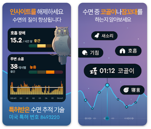 슬립 사이클은 많은 사람들이 사용하는 수면 체크 어플인데요. 사용자의 수면 주기를 분석하여 가장 가벼운 수면 단계에서 알람을 울려 자연스러운 기상을 도와주는 어플입니다. 이 어플은 또한 상세한 통계와 그래프를 제공하여, 사용자가 자신의 수면 패턴을 면밀히 관찰하고 개선할 수 있도록 도와줍니당. 음성 기록 기능도 포함되어 있어, 수면 중 발생하는 소리를 분석할 수 있더라구요. 만약 특정 시간대에 맨날 잠에서 깬다면 소음이 있었을 수도 있어요.