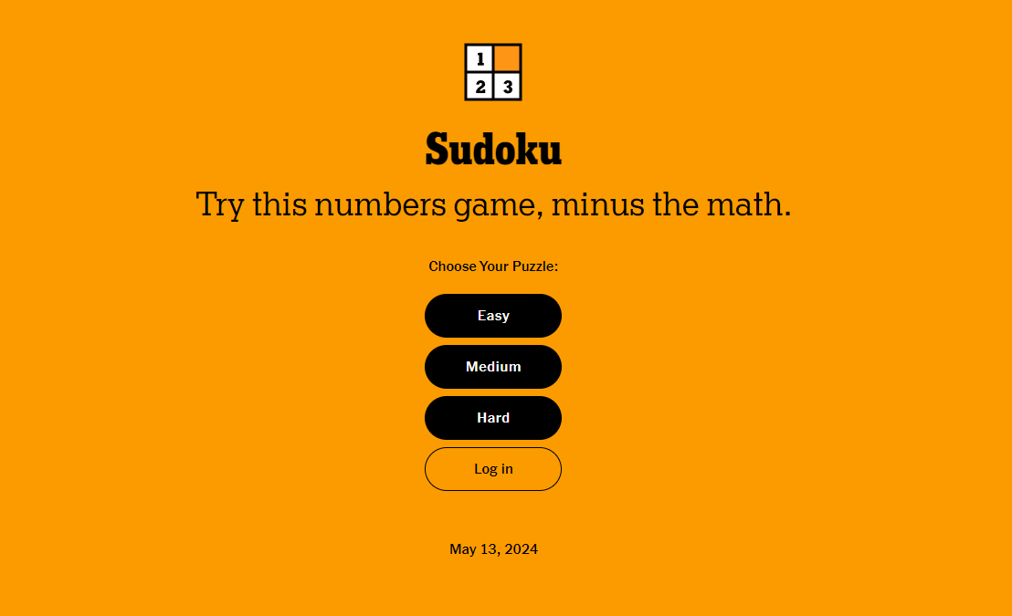 위에서 제공해드린 링크를 접속하셨다면 스도쿠 게임하기 스도쿠 무료게임을 플레이할 수 있는 뉴욕타임즈 퍼즐게임 페이지로 이동이 되었을 것입니다. nytimes는 미국 최고의 일간지 홈페이지이죠. 여기서는 스도쿠를 플레이할 수 있게 마련해두었습니다. easy, medium, hard 순으로 난이도가 달라집니다. 본인의 실력에 맞게 게임을 해보세요!