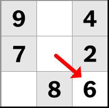 스도쿠 푸는 요령 방법의 4단계 입니다. 단일 후보자가 쉽게 도출이 된다면 좋지만, 어려운 경우 빈 칸에 가능한 모든 숫자를 작게 적어두고, 퍼즐을 푸는 과정에서 후보를 하나씩 제거해 나가는 것을 추천드려요. 이 기법은 후보 숫자들을 기억하기 쉽게 함으로 써 어려운 문제를 풀때 유용하죠. 그 과정에 논리력도 향상된답니다.