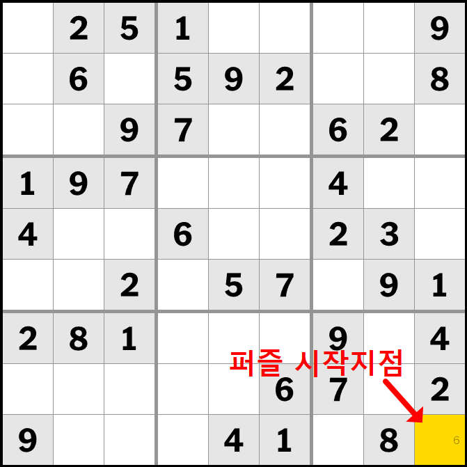 스도쿠 푸는 요령 방법에 대해 쉽게 설명해드리도록 하겠습니다. 스도쿠는 9x9 의 격자 박스를 기준으로, 위에서 숫자 1부터 9까지 각 행, 열, 그리고 3x3의 작은 박스에 중복 없이 배치하는 퍼즐 게임입니다. 오늘은 어떻게 하면 스도쿠를 좀 더 쉽게 풀 수 있을 지에 대하여 이야기 해보도록 하겠습니다.