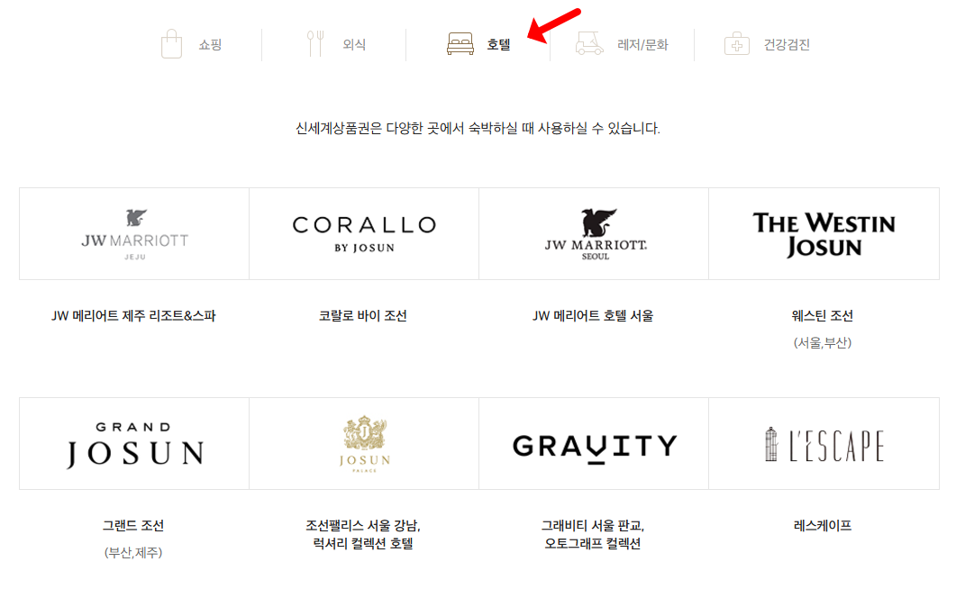 신세계상품권 사용처에는 호텔 등 숙박시설도 포함입니다. JW 메리어트, 웨스틴 조선, 그랜드 조선 등 고급 호텔부터 CGV, 메가박스, 영풍문고, 교보문고 같은 문화 시설까지 폭넓게 사용 가능합니다. 골프장(자유CC, 이포CC)과 스파 시설(신세계 센텀시티 스파랜드)도 포함되어 있어 여가 생활을 즐기시는 분들에게 좋은 사용처일 것 같아요. 특히 호텔의 경우 JW 메리어트, 파라다이스 호텔, 그랜드 힐튼 서울 등 다양한 지역의 호텔에서 사용 가능합니다. 일부 시설은 연회장이나 특정 서비스 이용에 제한이 있을 수 있으니 사전 확인이 필요하다는 사실 유의해주세요!
