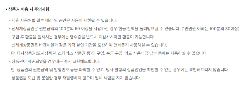 신세계상품권 사용처에 대해선 어느정도 살펴보았으니 신세계상품권 현금교환에 대해서 마지막으로 알아보겠습니다. 상품권의 60% 이상을 사용한 경우, 남은 금액을 현금으로 교환할 수 있습니다. SSG페이를 통한 현금화 방법도 있으며, 이 경우 5%의 수수료가 발생할 수 있습니다. 신세계백화점이나 이마트 고객센터를 통해 현금 교환이 가능하며, 1만원 이하 상품권은 80% 이상 사용해야 합니다. 상품권의 유효기간과 사용 조건을 꼭 확인하시기 바랍니다. 이러한 현금교환 옵션은 상품권의 활용도를 더욱 높여주는 매력적인 기능입니다.