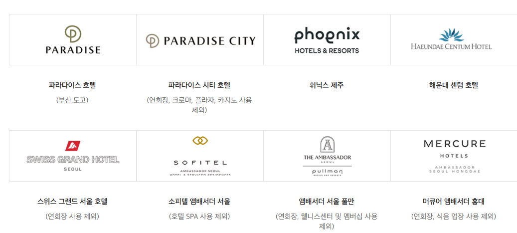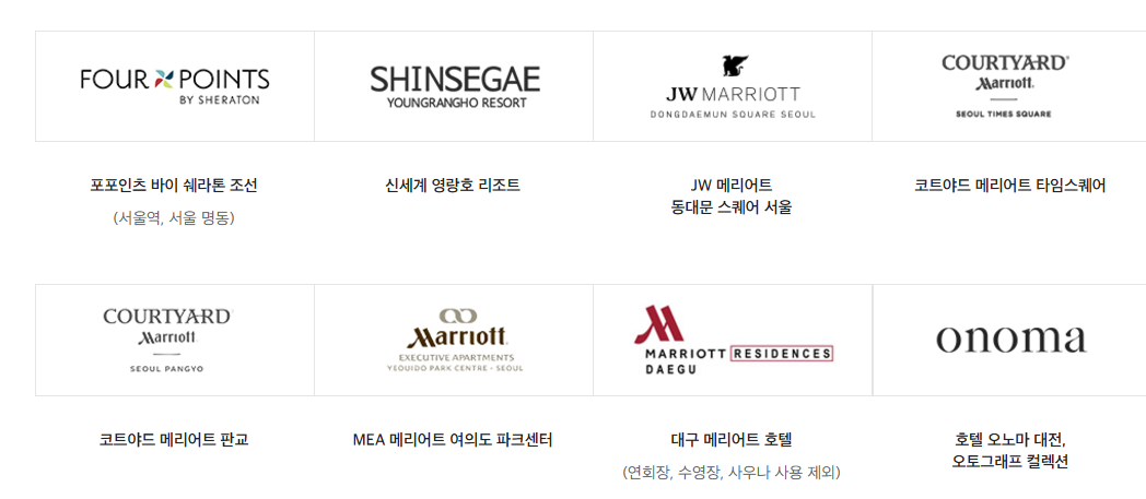 신세계상품권 사용처에는 호텔 등 숙박시설도 포함입니다. JW 메리어트, 웨스틴 조선, 그랜드 조선 등 고급 호텔부터 CGV, 메가박스, 영풍문고, 교보문고 같은 문화 시설까지 폭넓게 사용 가능합니다. 골프장(자유CC, 이포CC)과 스파 시설(신세계 센텀시티 스파랜드)도 포함되어 있어 여가 생활을 즐기시는 분들에게 좋은 사용처일 것 같아요. 특히 호텔의 경우 JW 메리어트, 파라다이스 호텔, 그랜드 힐튼 서울 등 다양한 지역의 호텔에서 사용 가능합니다. 일부 시설은 연회장이나 특정 서비스 이용에 제한이 있을 수 있으니 사전 확인이 필요하다는 사실 유의해주세요!