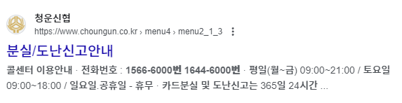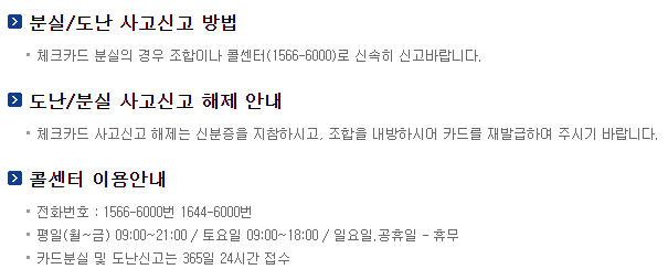 | 카드 분실/도난 신고 | 1566-6000 또는 1644-6000 (24시간) |