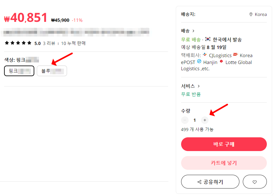 알리익스프레스 구매방법은 다른 오픈마켓을 이용하는 것과 다르지 않습니다. 상단의 검색창에다 물건을 검색하거나, 카테고리를 클릭하여 본인이 찾는 물품의 종류를 파악해서 찾아보셔도 됩니다. 원하는 물건을 찾으셨다면 클릭을 하시면 상세 페이지로 이동이 되실 것입니다. 색상과 수량을 잘 확인하신 뒤, "바로구매" 버튼을 눌러주세요.