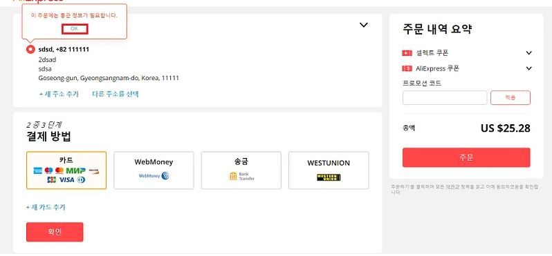 알리익스프레스 구매방법은 이제 크게 달라질 점은 없습니다. 배송 받을 주소를 입력하시고, 결제 방법을 선택하시면 되는데, 알리에서 결제 수단은 일반적으로 마스터, VISA 카드라면 모두 등록 가능하며, 페이 결제도 가능합니다. 알리는 페이류를 이용할 때 할인을 해주는 혜택 및 이벤트가 종종 있는 편입니다. 구비해두시면 좋겠지요? 대표적인 페이로는 카카오페이가 있구요. 네이버, 토스로도 이용 가능합니다.