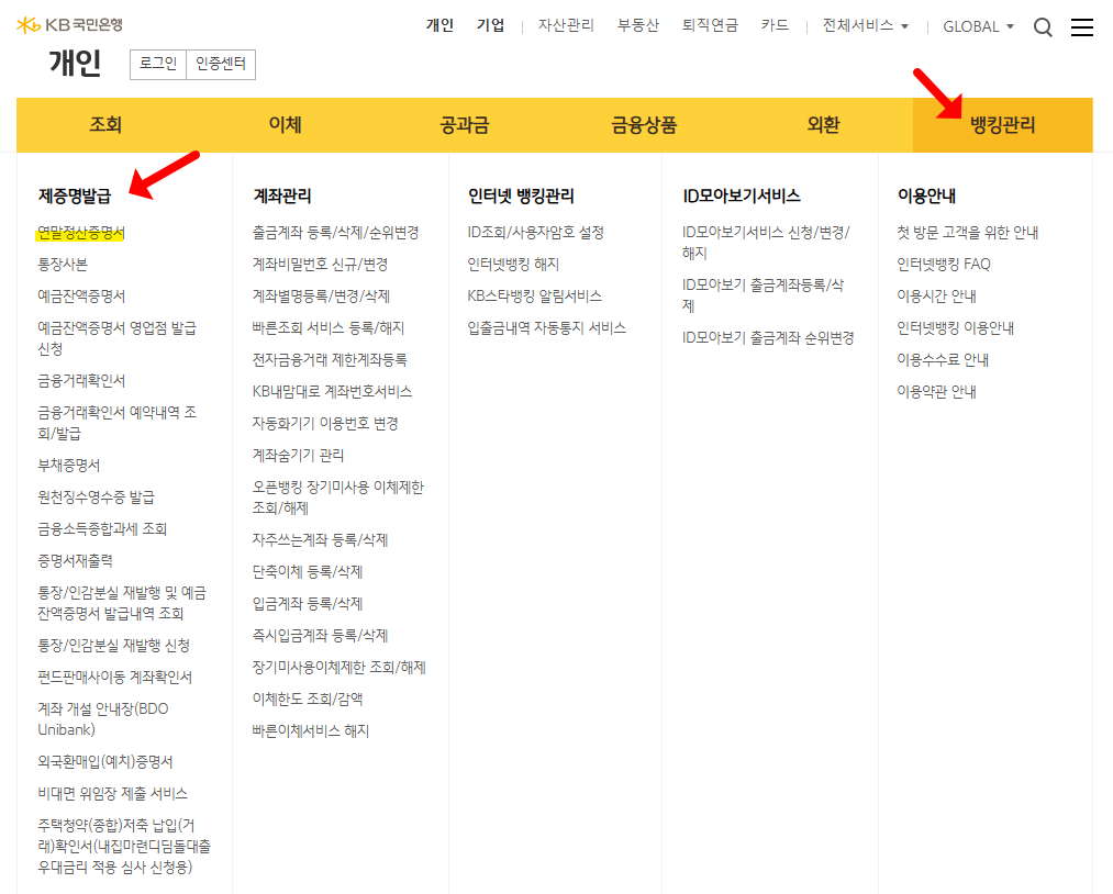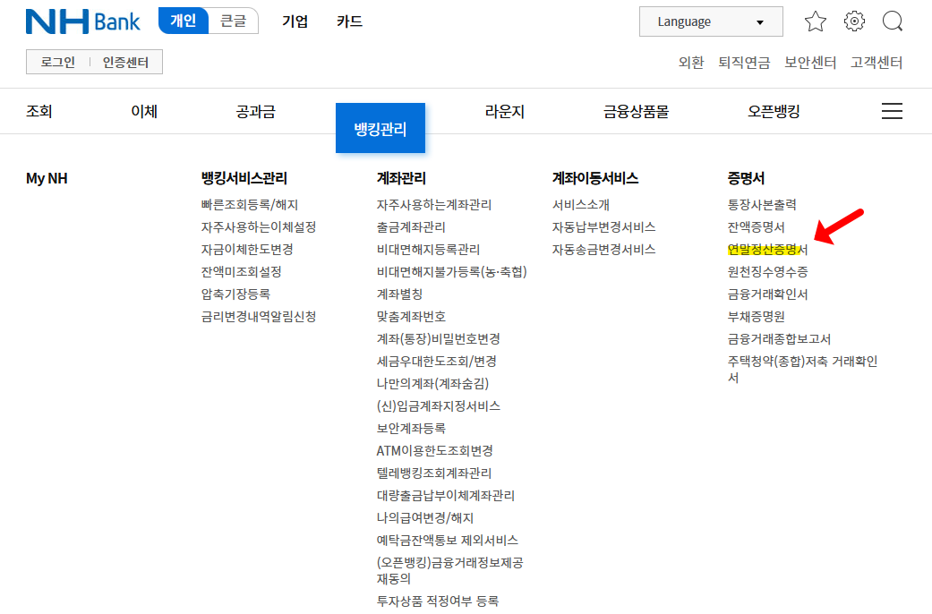 연말정산 무주택확인서 인터넷 발급 (은행)