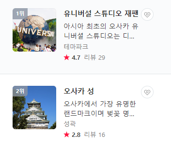 - 오사카성: 일본의 유명한 역사적 명소로, 아름다운 성과 주변 공원이 관광객에게 인기입니다.