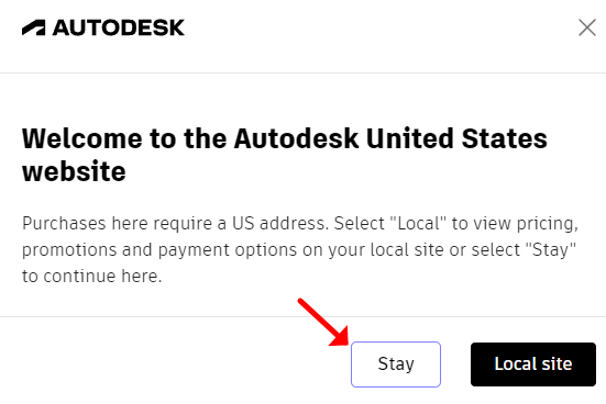또 페이지가 이동이 되는데 오토데스크 미국 웹사이트로 이동이 됩니다. 이 때 팝업창에서 한국 사이트로 변경할 것인가 물어보는데 'Stay'를 눌러서 사이트를 그대로 유지해줍니다. 그리고 View and convert 2D and 3D DWG files for free 라는 설명 아래의 'Install' 버튼을 눌러줍니다. 사용 동의 'Accept'를 눌러 진행해주세요.