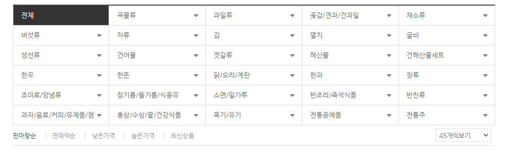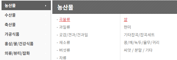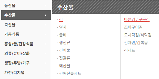 우체국쇼핑몰 홈페이지의 주요 상품 카테고리