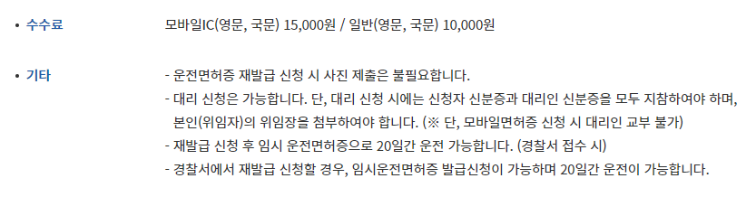 - 모바일(IC) 운전면허증: 15,000원
