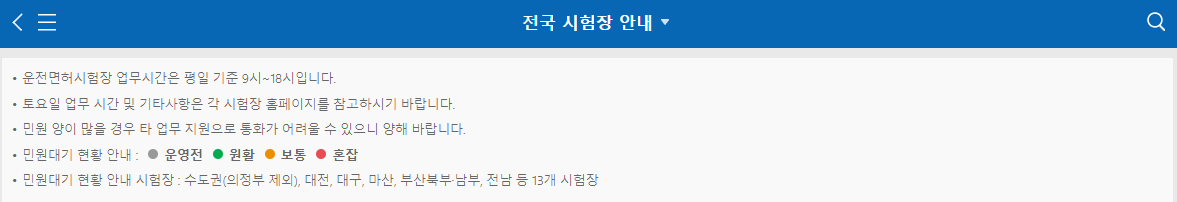 - 주의 사항: 전국에 운전면허 시험장이 많지 않으므로 위치 확인이 필요합니다.