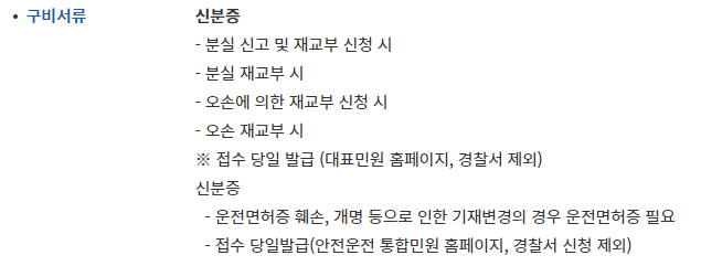 운전면허증 재발급 준비물