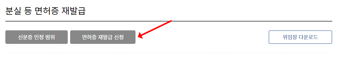 - 도로교통공단 사이트 방문: [면허증 재발급 신청] 버튼 클릭.