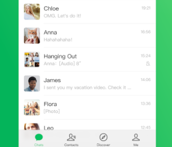 - 스마트폰의 위챗 앱에서 파일을 전송하고자 하는 채팅방을 엽니다.