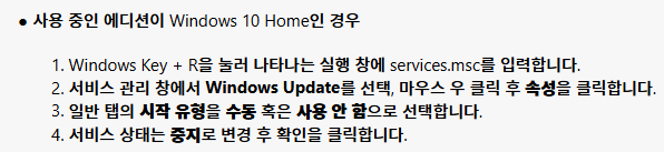서비스 관리 도구를 이용한 업데이트 비활성화