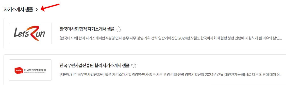 인크루트는 구인구직 정보를 제공하는 온라인 취업포털로, 다양한 채용 정보와 함께 자기소개서 예시 샘플을 제공함으로써 자소서 작성에 도움을 주는 서비스를 제공합니다. '이력서˙자소서' 메뉴에서는 다양한 기업의 실제 합격 사례를 볼 수 있으며, 직무별, 산업별로 구분되어 있어 원하는 분야의 자기소개서를 쉽게 찾아볼 수 있습니다. 또한, 자기소개서 작성 팁과 가이드라인을 제공하여 구직자들이 보다 효과적으로 자신의 역량을 어필할 수 있도록 돕습니다. 이를 통해 취업 준비생들은 자신의 강점을 부각시키는 방법을 배우고, 보다 경쟁력 있는 자기소개서를 작성할 수 있습니다.