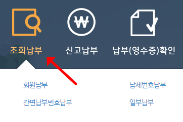 - '납부대상 조회' 메뉴 선택