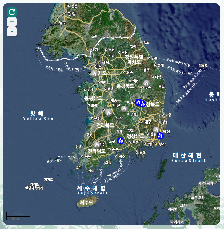 전국 산불 현황 지도