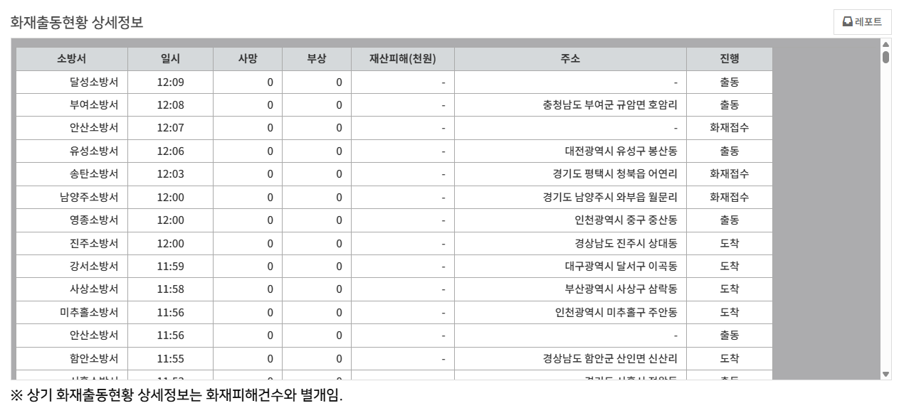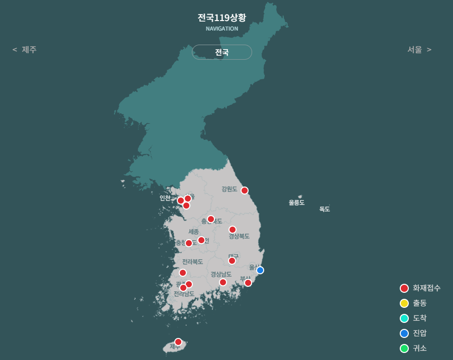 소방청 국가화재정보시스템은 전국 119 상황실에서 실시간으로 제공하는 화재 정보를 확인할 수 있는 곳인데요. 이곳에서는 전국 산불 현황 지도뿐만 아니라, 건물 화재, 차량 화재 등 모든 종류의 화재 정보를 실시간으로 제공하고 있습니다. 특히 지도 기반으로 화재 발생 위치를 보여주기 때문에, 산불 발생 지역을 쉽게 파악할 수 있어요. 혹시 주변에서 연기가 보이거나 화재가 의심되는 상황이 발생하면, 즉시 119에 신고하시는 것이 중요합니다.