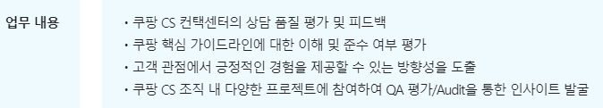 쿠팡 고객센터 전화번호 상담 및 채팅, 다양한 문의를 담당하는 상담사들은 전문성 강화를 중요하게 여기는 쿠팡의 철학아래 Quality Improvement 팀 산하의 QA Associate 포지션을 통해 CS 컨택센터의 서비스 품질을 철저히 관리합니다. 상담 품질 평가, 피드백 제공, 핵심 가이드라인 준수 여부 확인 등을 통해 상담사들이 고객에게 긍정적인 경험을 제공할 수 있도록 돕고, 서비스 품질을 높이기 위해 최선을 다한다고 하네요.