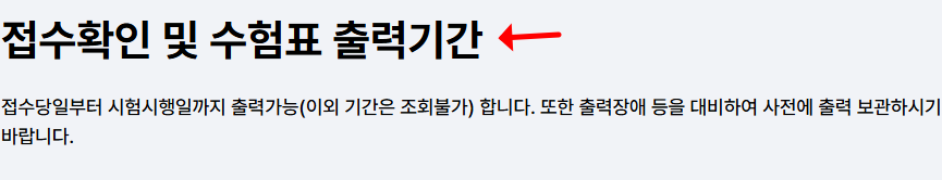 원서접수가 완료되면 수험표를 출력할 수 있습니다. 큐넷 원서접수 홈페이지 바로가기에서 로그인 후 '나의 접수현황' 메뉴에서 수험표를 출력하실 수 있습니다. 수험표에는 시험일시, 장소, 준비물 등 중요한 정보가 기재되어 있으니 반드시 확인하셔야 합니다. 그러나 수험표는 자신의 수험번호 등을 참고하는 정도로 활용하고, 꼭 들고가진 않아도 된다고 합니다.(모바일 수험표도 날아오기 때문) 시험 당일에는 신분증을 꼭 지참하셔야 하니 잊지 마세요.