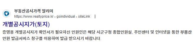 토지 공시지가 조회 사이트