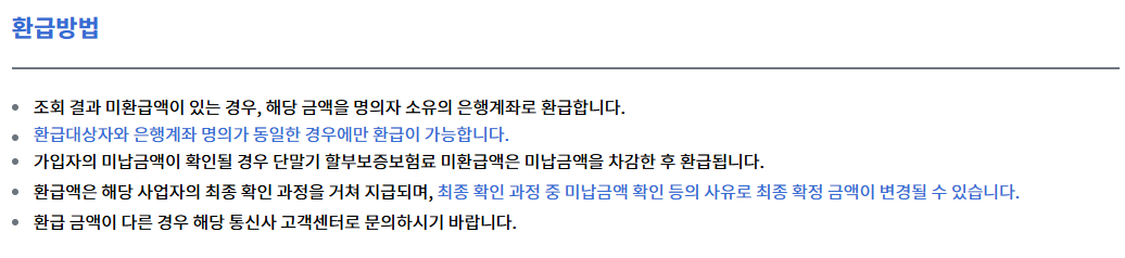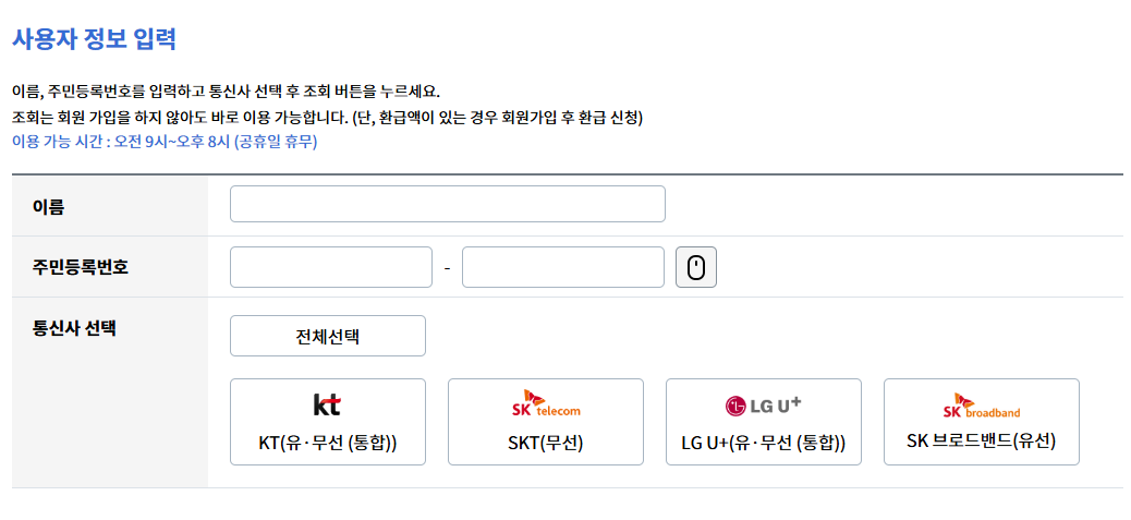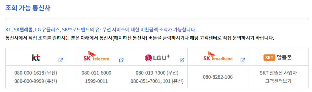 통신사 미환급금 조회 바로가기