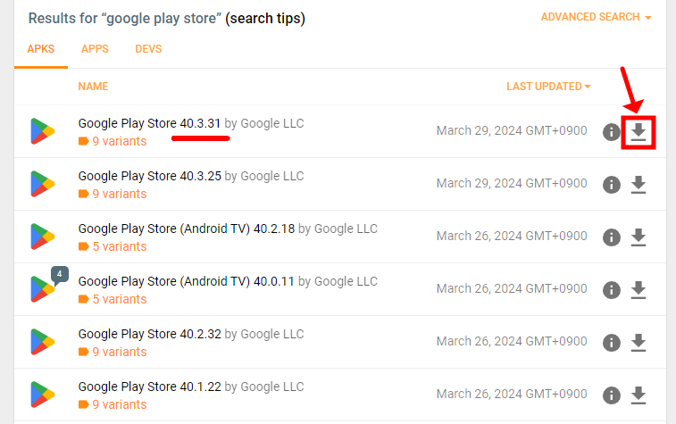 - APKMirror와 같은 신뢰할 수 있는 사이트에서 Google Play 스토어 APK 파일을 다운로드합니다.