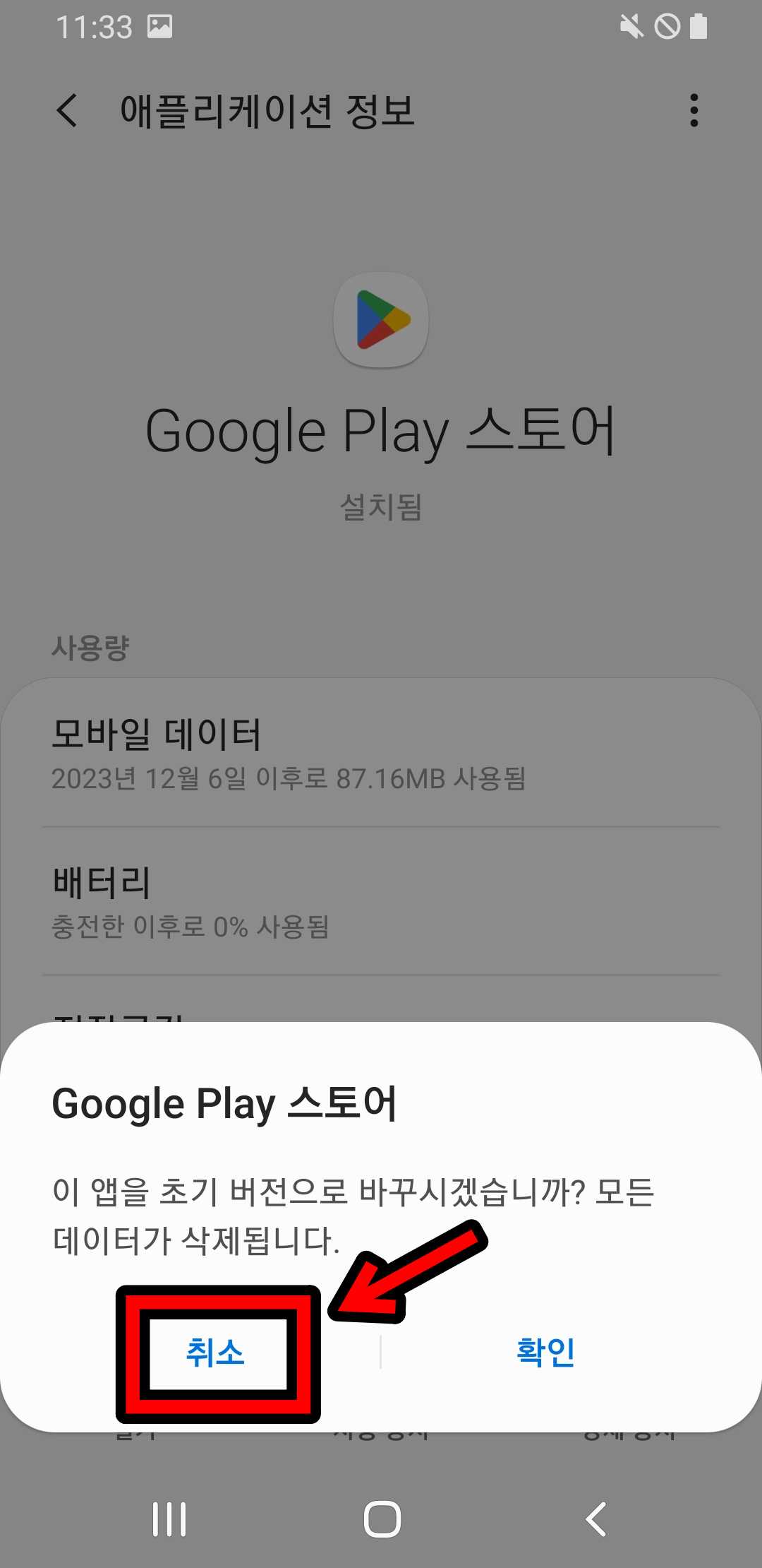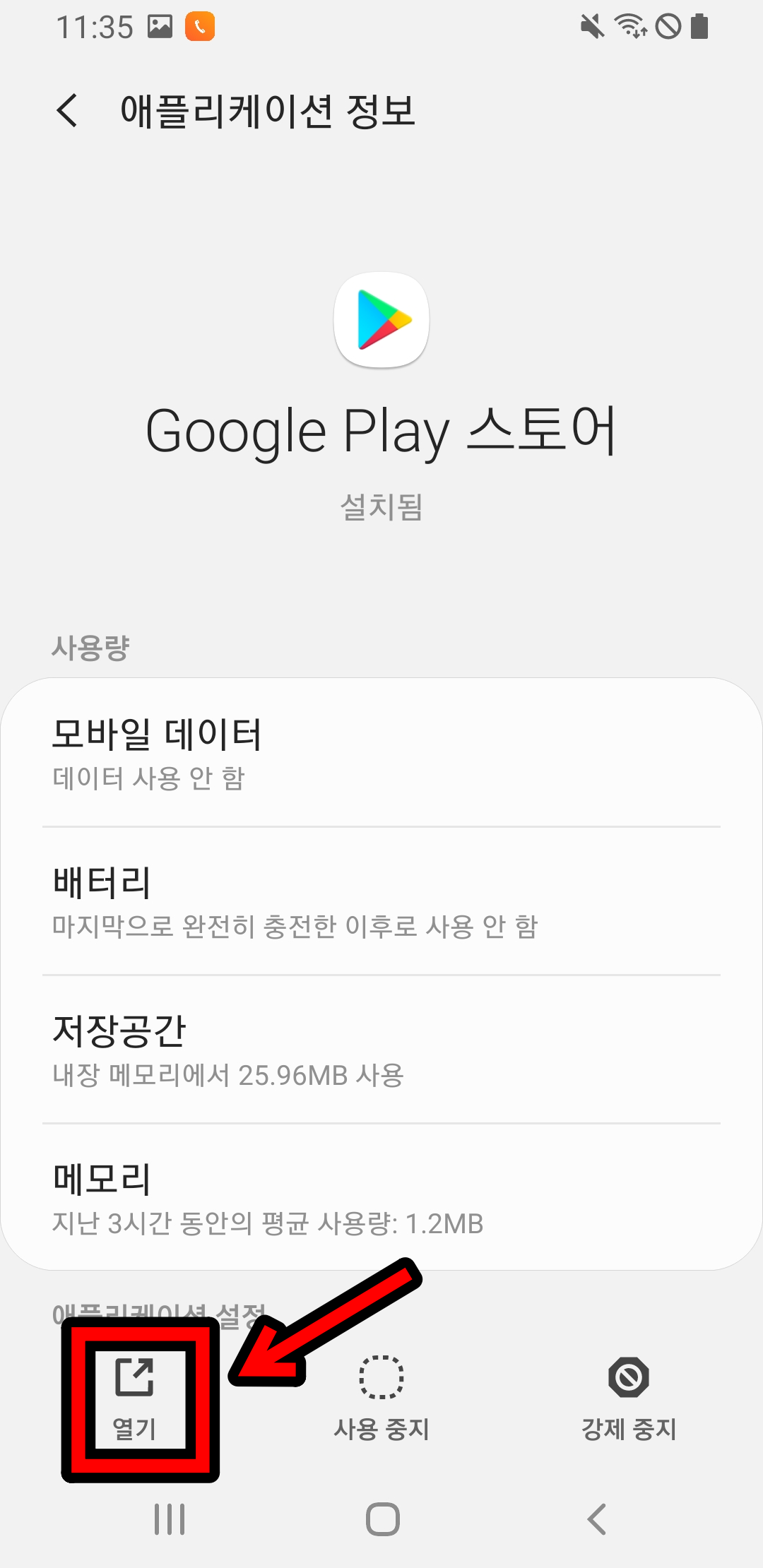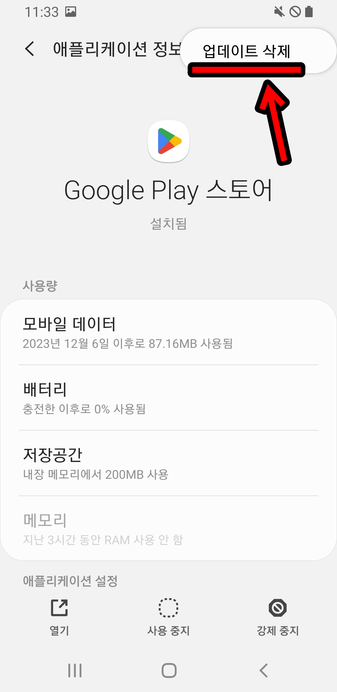 플레이스토어 다운로드 설치하기 방법 중 첫번째 입니다. 앱 설정에서 업데이트 삭제를 진행해보시기 바랍니다.