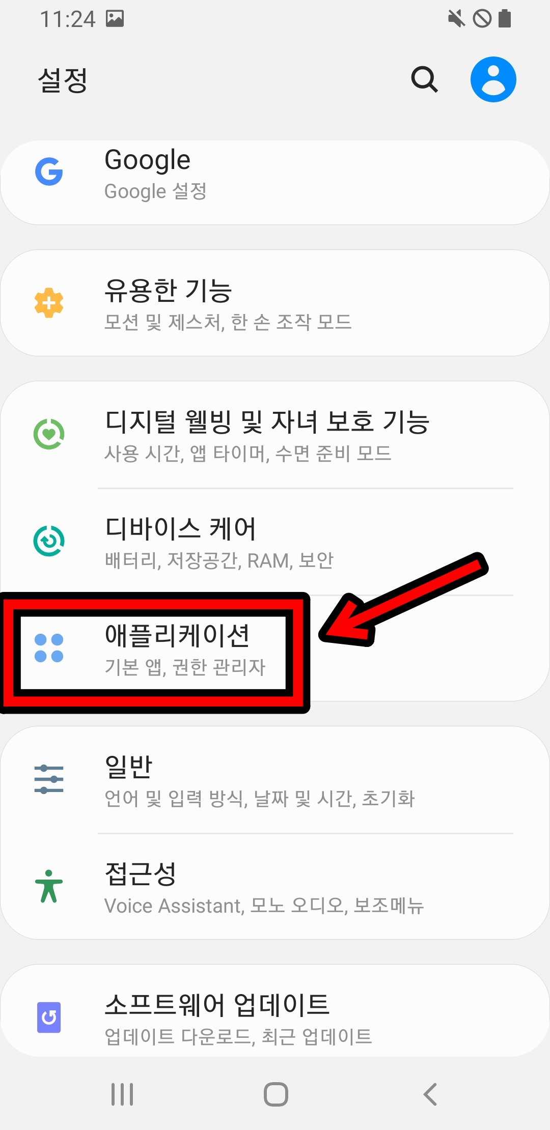 - 스마트폰에서 '설정' 을 클릭 후 '애플리케이션 관리자'로 이동합니다.