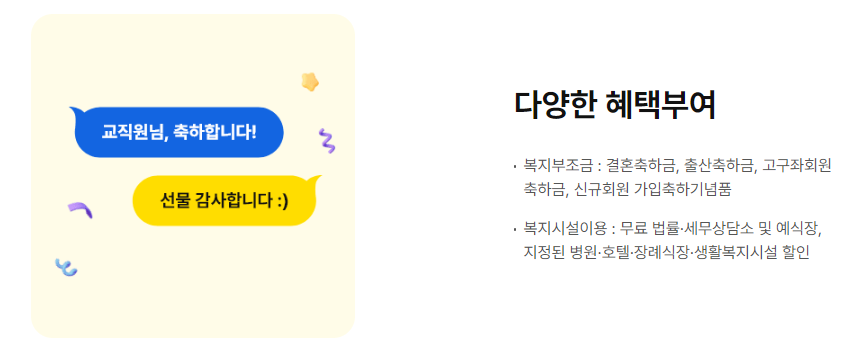 • 혜택: 홈페이지 회원이 되어야만 다양한 복지 혜택을 누릴 수 있습니다.
