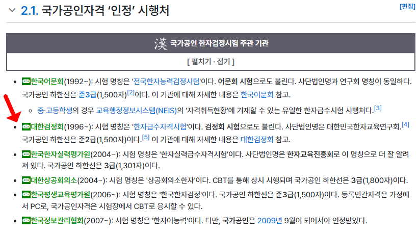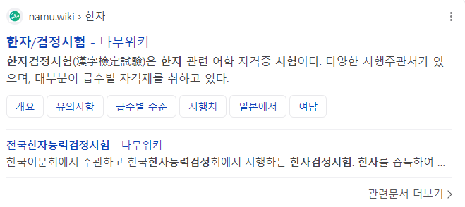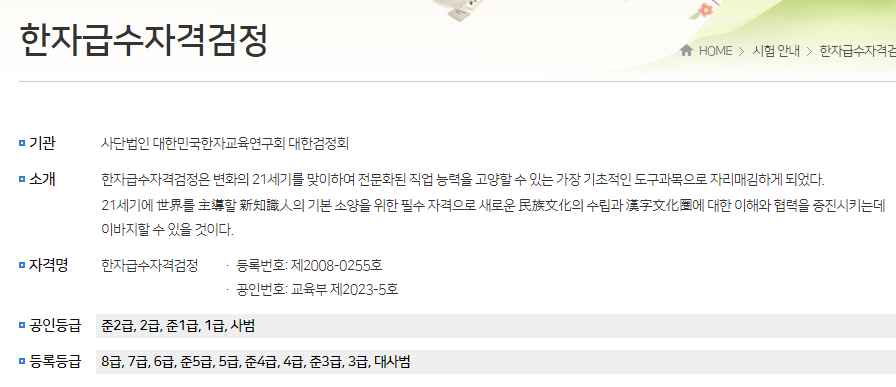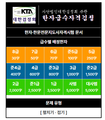 한자능력검정시험 한자급수시험