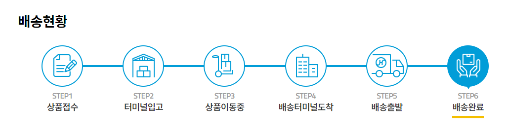 - 총 STEP 6단계로 이루어진 배송현황을 확인하여 물품의 위치와 상태를 확인