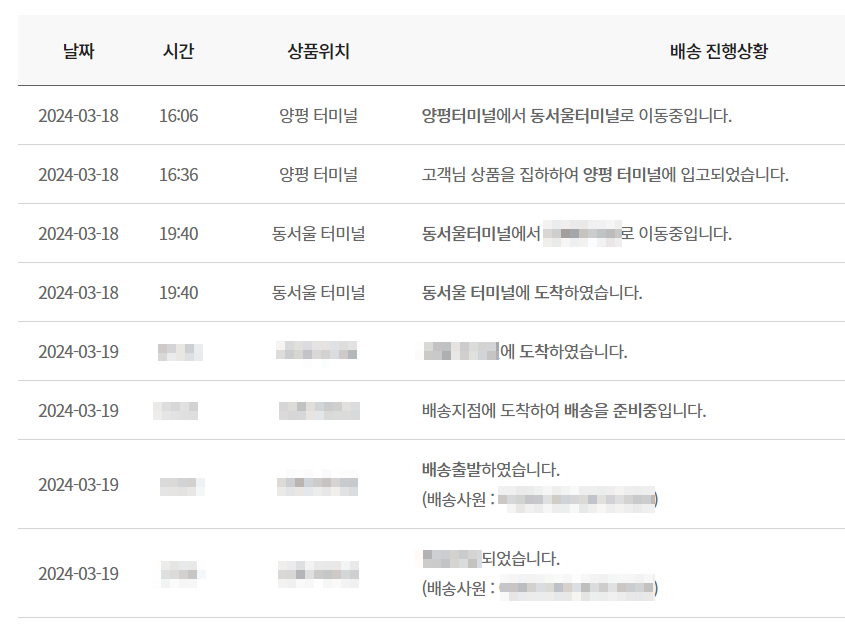 - 자세한 내역을 확인하고 싶다면 '배송 진행상황' 표를 확인