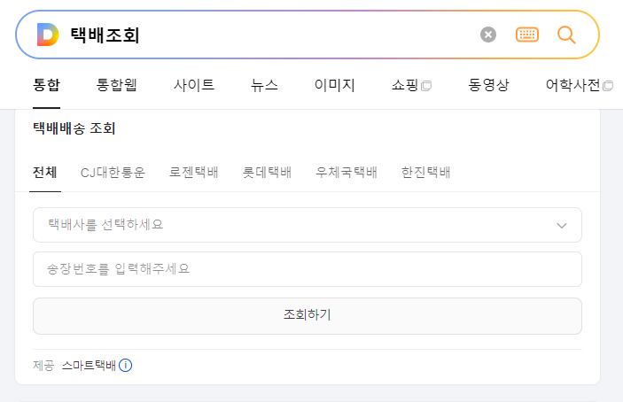 - 다음 포털사이트 검색창에 '택배조회'입력