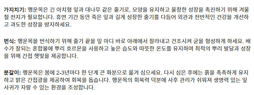 - 물: 토양의 상층부가 마르면 충분히 물을 주세요. 과습은 뿌리 썩음을 일으킬 수 있습니다.