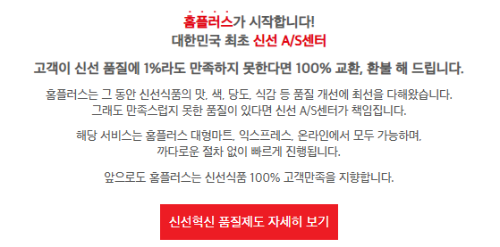 앞서, 홈플러스의 가장 큰 장점으로 신선식품 배송에 강점이 있다고 했었죠. 이는 품질 보장 시스템 덕분인데요. 콜드체인 시스템을 통해 산지에서 고객 배송까지 전 과정에 걸쳐 최적의 온도를 유지한다고 합니다. 또한 농산물 전문가들이 직접 상품을 선별하고 품질을 관리하고 있죠. 신선도 보장제를 통해 품질에 문제가 있을 경우 100% 환불을 해준다고 하니 안심하고 구매할 수 있을 것 같아요. 우수 산지와의 직거래를 통해 고품질 상품을 제공하는 것도 홈플러스만의 강점이라고 할 수 있겠네요.