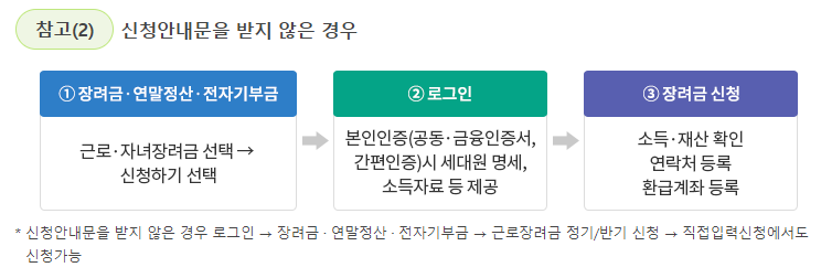 - 근로장려금 온라인 신청: 홈택스(PC·앱)를 통해 신청 가능.